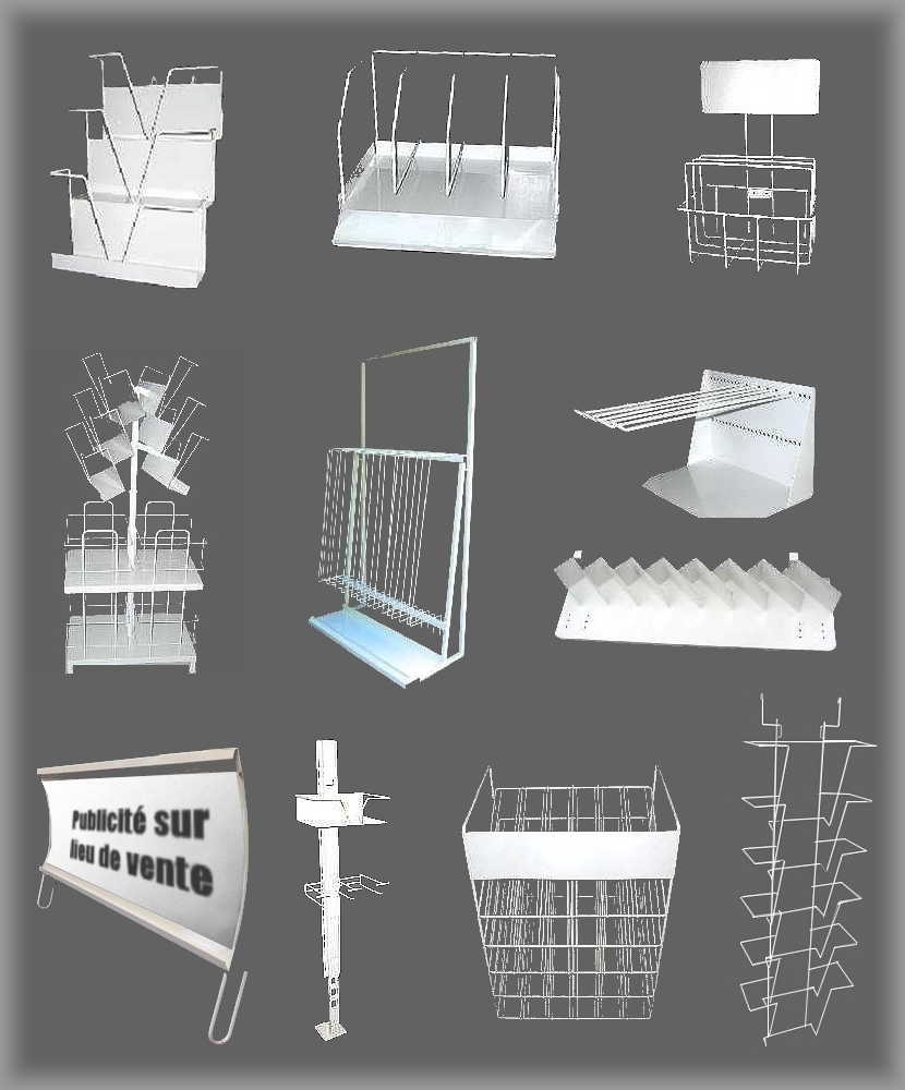 - Présentoirs de caisse, présentoirs mobiles, présentoir de vitrine.